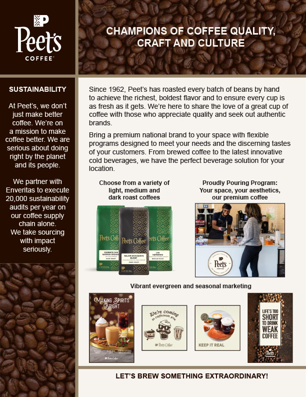 Peet’s Coffee provides operators with responsibly sourced, premium coffee and on-trend flavors from a top brand customers know and love.